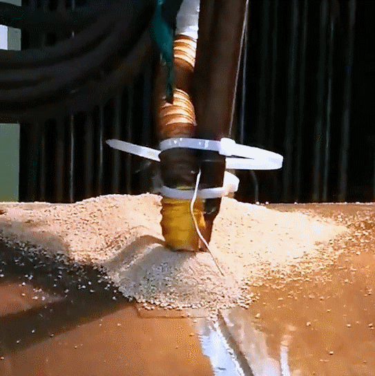 面對重重挑戰(zhàn),生性不服輸?shù)膰澜∨c難題拗上了勁。每一次試驗后,他都做出深刻總結(jié),在失敗原因與解決辦法中反復(fù)思考,利用大量休息時間,查閱了相關(guān)學(xué)術(shù)論文技術(shù)資料,但“破局”似乎總是遙遙無期。偶然間與同學(xué)的一通電話,給這件事帶來了轉(zhuǎn)機。電話中,與從事海工產(chǎn)品制造并了解環(huán)焊縫焊接的同學(xué)的一番交流,為他理清了思緒,找到了針對性的措施。在優(yōu)化了焊接參數(shù)的相關(guān)匹配后,在攻關(guān)上歷盡劫波的嚴建俊終于成功了,雙絲機頭的結(jié)構(gòu)排列、焊劑和焊縫金屬濺出問題、根部焊道清渣困難都得到徹底解決。